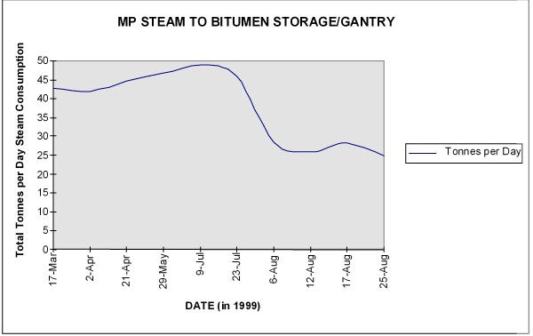 At Shell Clyde Refinery in Sydney, Consteam demonstrated that real and tangible savings may be achieved by auditing and implementing recommendations as advised by Consteam. Approximately 50% of the Bitumen Plant's steam consumption was saved following Consteam's auditing and recommendations being implemented. The simple payback period was less then six (6) months.